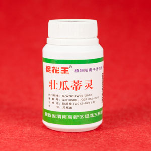 壯瓜蒂靈膠囊:每瓶80粒?墒垢鞣N瓜果防落,增香、增甜,膨大快。適用于西瓜、黃瓜、苦瓜、南瓜、絲瓜、冬瓜、西葫蘆、佛手瓜、甜瓜、哈密瓜、瓜蔞等。 每15公斤液體中加入本膠囊1粒,也可以加多粒,攪拌溶解后噴霧于植物表面。每畝瓜園每次用2粒,配60市斤水噴霧。間隔7—10天噴1次,連噴3次即可。用戶也可根據(jù)瓜體積膨大需要任意加大用量。本品PH值中性,遵照使用要求稀釋后噴霧,亦可以和各種農(nóng)藥及葉肥混合使用。稀釋液存放保質(zhì)期30天。